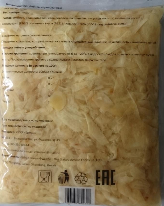 Энергетическая ценность имбирь маринованный составляет 20 кКал.