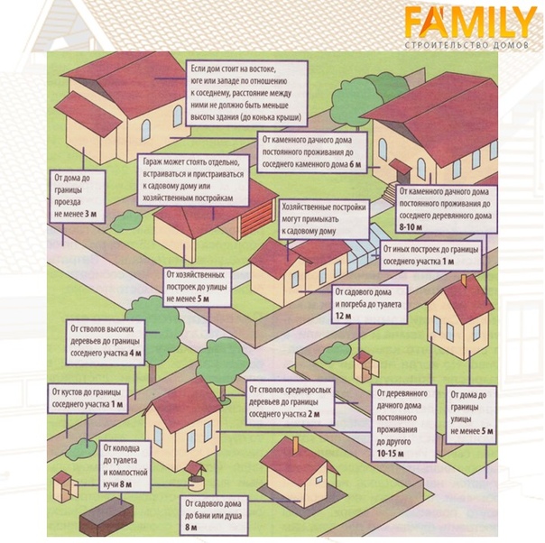 - Обязательно соблюдение расстояний до красных линий: проезжая часть, ЛЭП, центральная линия водопровода, канализации и газопровода.