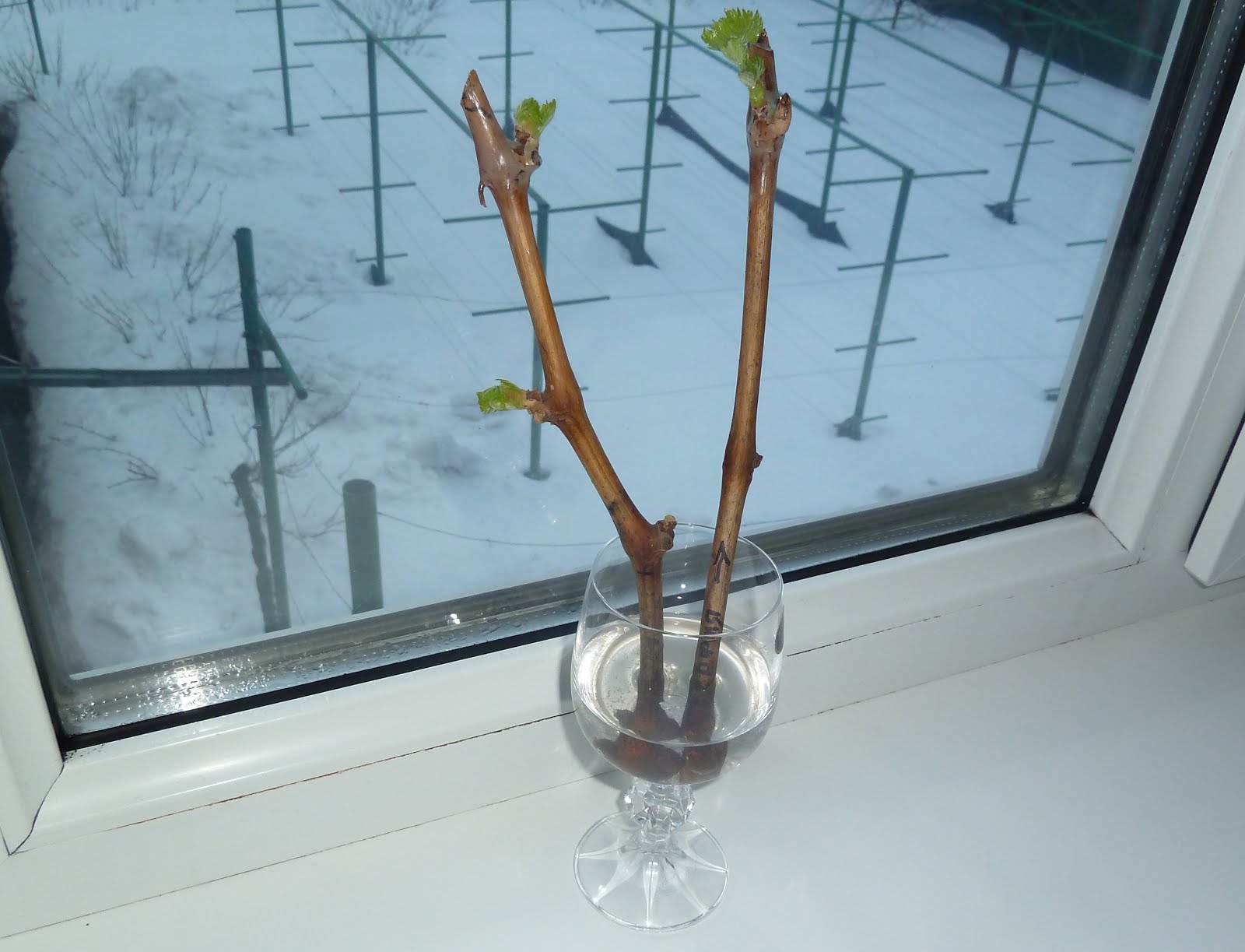 Этот вариант, с одной стороны, проще, с другой сложнее: надо более строго отслеживать влажностный, световой и температурный режим. Кроме того, есть сорта винограда, плохо дающие корни, и для них такой номер не пройдёт.