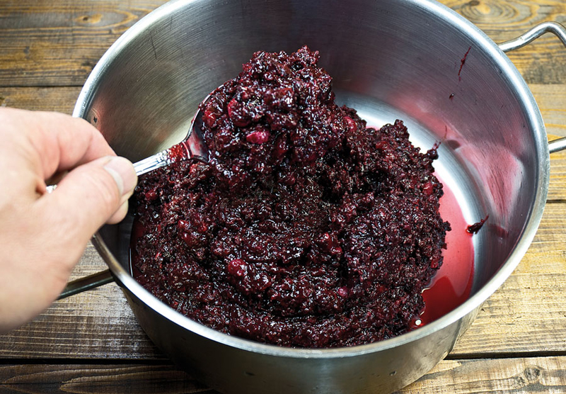 После чего отобранные плоды давят руками либо пестиком (ни в коем случае не металлическим). Если предполагается сделать больший объем лучше задействовать специальные технические приспособления или, как это было принято раньше, — размять ягоды ногами.
