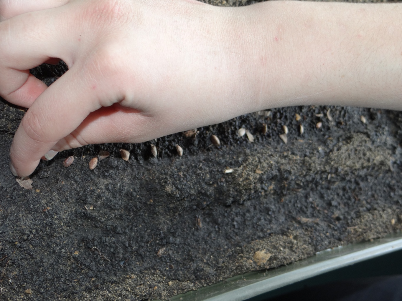 Сажать орешки нужно на глубину 1,5-2 см. Ямки делать совсем не обязательно, — просто берем орешек и пальчиком втыкаем его в землю, немного продавливая). Лучше сажать острым кончиком вниз.