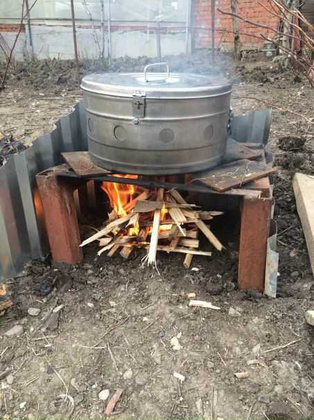 Топку можно сделать своими руками из железной ёмкости или старой стиральной машинки. Так что и эту бытовую технику тоже не надо торопиться выбрасывать.
