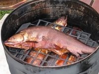 - если коптить в аппарате размером с бочку, то места достаточно для приготовления среднего размера рыбы.