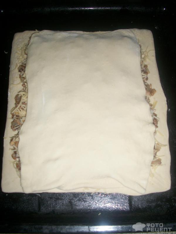 Загните край корочки пирога и защипните край, чтобы он получился ровным и встал.