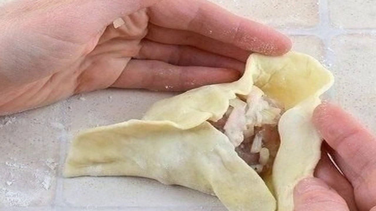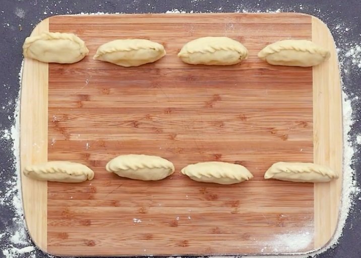 Края лепешки соединяем и защипываем. Так поступаем с каждым пирожком.