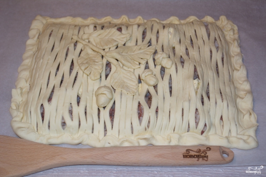 - Продолжайте этот процесс по всему пирогу в обоих направлениях, пока не образуется решетчатая корочка.