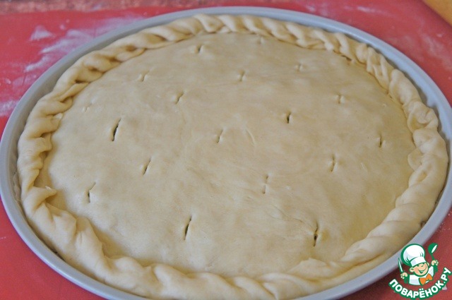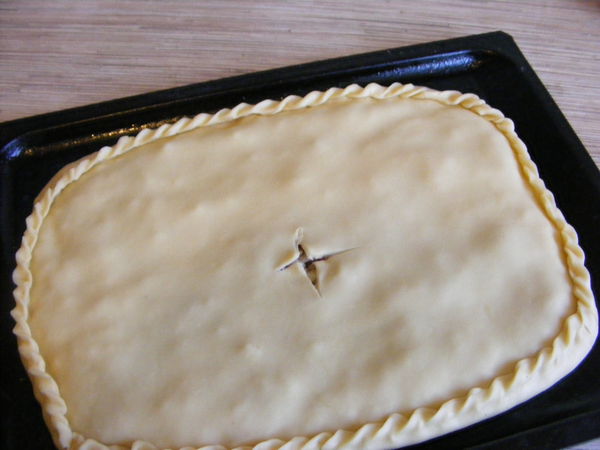 Если пирог полностью закрытый, нужно проделать в центре небольшую дырочку, через которую будет выходить пар.