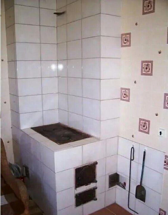 Такой способ отделки подходит для тех, у кого есть возможность раскошелиться. Речь идет не о стандартной плоской плитке, а о материале особого рода. Каждый изразец имеет вид пластины, дополненной с обратной стороны румпой. Такой выступ обеспечивает очень надежное крепление плитки к основе и позволяет дольше удерживать отдаваемое печкой тепло.