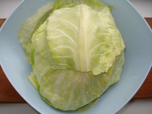 - Не забудьте срезать или отбить кухонным молотком плотную часть листа у основания кочана.