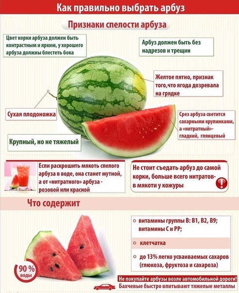если при сжатии арбуз не трещит, но на вид зрелый, значит, созрел он не без чужой ”помощи”.