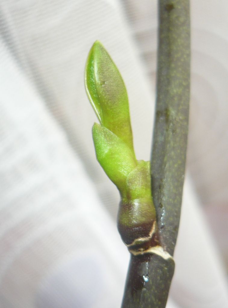 Сначала между листовой пластиной и стволом появляется маленький нарост, который вытягивается с каждым прожитым днем. И рост происходит в сторону источника солнечного света. На формирующемся побеге