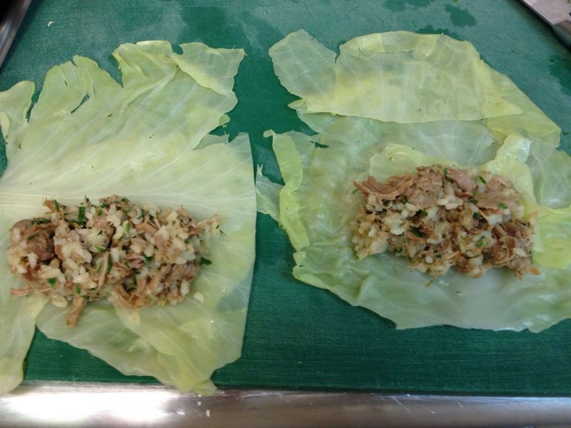 - На листьях могут оставаться твердые прожилки. Их можно аккуратно срезать ножом, держа его параллельно поверхности стола. Важно не повредить целостность листа, иначе такой голубец будет разваливаться.