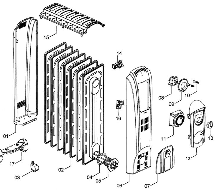 - Затем прибор нужно разобрать и рассмотреть схему масляного радиатора, чтобы понять, почему он не работает. Для этой цели выполняют отсоединение панели управления от основного корпуса. В качестве крепежа в этом случае могут использоваться защелки, винты и скобы, поэтому важно провести тщательный визуальный осмотр. После определения типа крепления снимают панель управления. При этом очень важно не прилагать особых усилий, чтобы не сломать пластмассовые элементы.