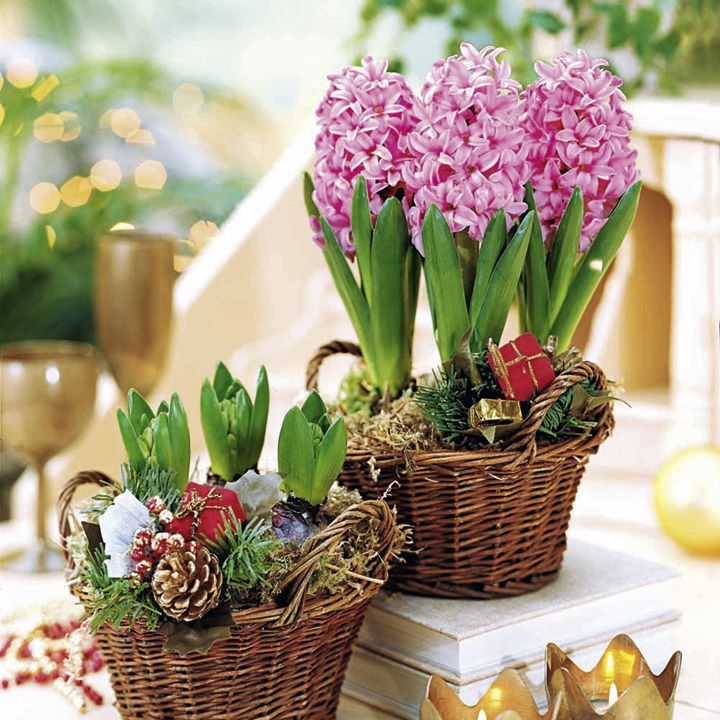 Цветение обычно происходит весной, но их также можно оставить внутри, чтобы создать рождественское шоу в вазе с цветущим гиацинтом.