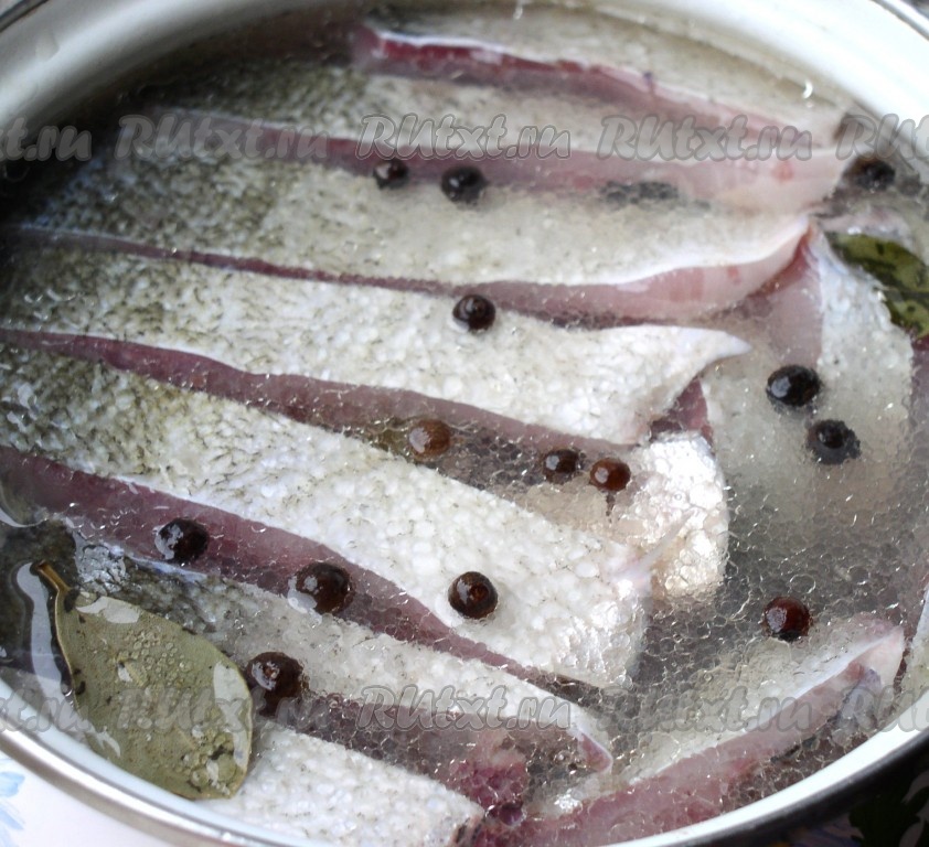 Рыбу надо отправить в емкость, перекладывая каждый слой пряностями