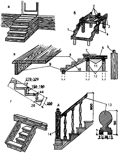 Основной составляющей каждой ступени является проступь — горизонтальная доска, размером от 27 до 33 см, и подступенок — вертикальная доска, высота которой колеблется в пределах 15-18 см.
