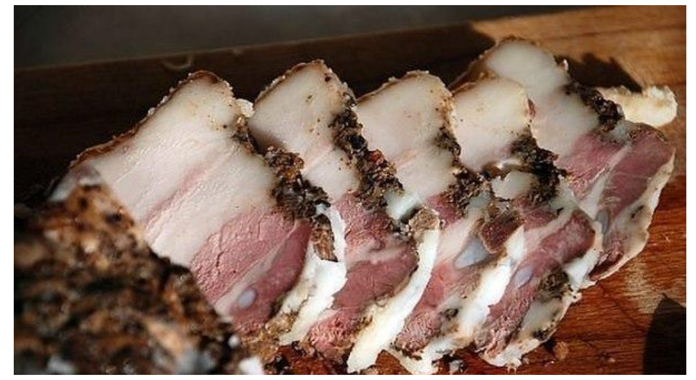 Для этого рецепта хорошо взять подчеревок — сало с прослойками мяса или грудинка. Готовится очень просто, хранить в морозилке можно до 1 года, хотя вряд ли оно у вас там столько проживет, уж очень оно вкусное!