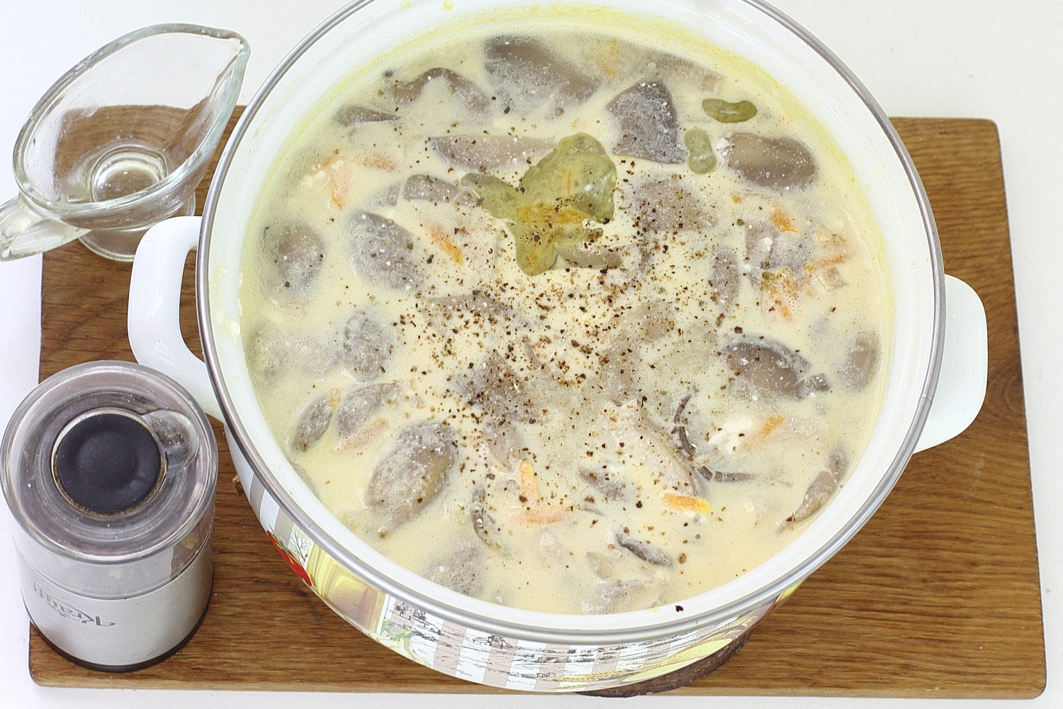 В данном случае бульон не становится белым, но вкус супа весьма хорош. Сочетание грибов и сыра всегда удачное. Поэтому готовим, не сомневаясь, вкусный обед.