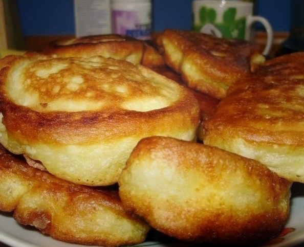 Особенно нежные оладьи на кефире получаются при мучном заваривании — такие оладьи называются заварными.