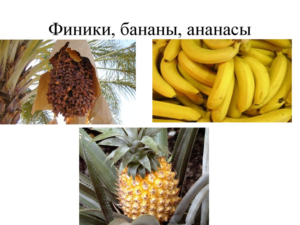 - Бананы созревают в тропиках (Куба, Эквадор), во многих африканских странах, а также Латинской Америке (Колумбия, Бразилия). Также масса бананов растет в Китае и Индии — правда, из этих стран их почти не экспортируют, местное население все съедает подчистую. Как и в случае с ананасами, бананы растут не на деревьях, а на высокой, пятнадцатиметровой траве.