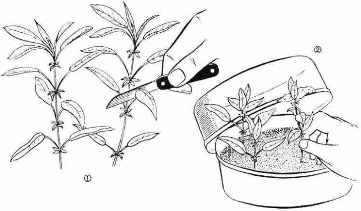 - Летом черенкуют (в июле-августе), а именно нарезают и ставят на укоренение зеленые черенки.