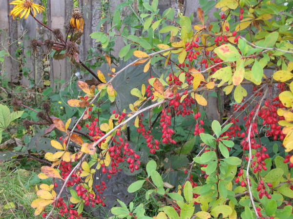 - Осенью (в сентябре-октябре) барбарис делят и заготавливают одревесневшие черенки для их дальнейшего хранения зимой и последующей посадки весной, а также высаживают уже укорененные черенки в открытый грунт и отделяют укорененные отводки.