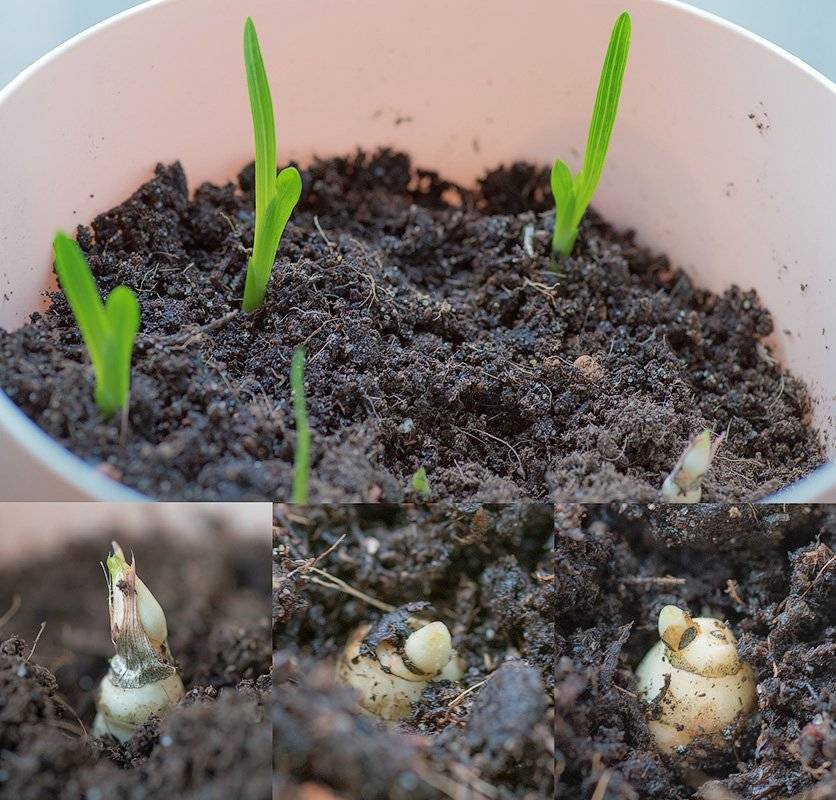 - Всходы должны появиться в течение четырех недель. Но цветение может начаться только через один-два сезона после посадки новых отростков клубнелуковиц.