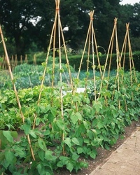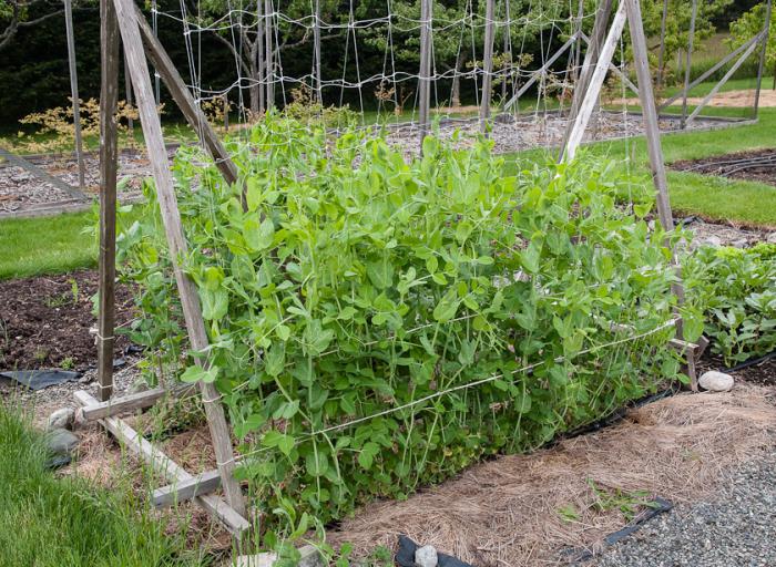Сорта съедобного стручкового гороха, как виноградные, так и кустарниковые, выиграют от опоры для лазания, такой как решетка или сетка. Какой бы поддерживающий аппарат вы ни использовали, поместите его в землю перед посадкой гороха или сразу после него, чтобы не повредить неглубокие корни растений.