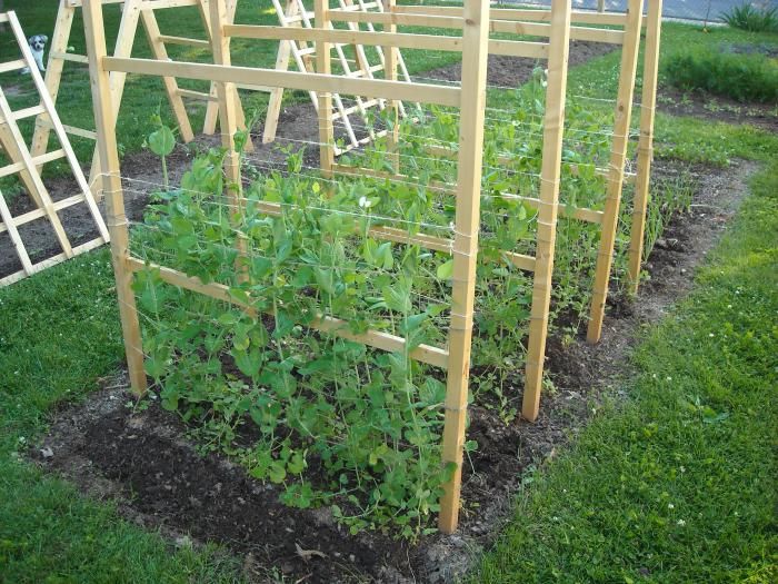 Большинство популярных сортов гороха имеют полегающий стебель. Для полноценного развития и лучшей освещенности растению нужно цепляться за опору. Подвязывать горох необходимо, когда стебель отрастет в длину на 10-15 см. В качестве опоры можно использовать: