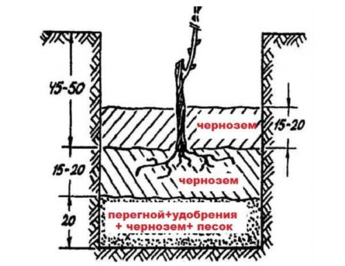 Посадочную яму засыпают землёй, смешанной с перегноем