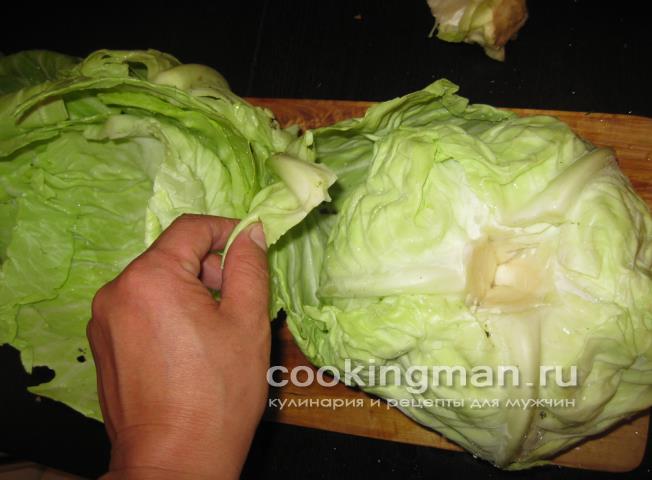 org/HowToStep»>Отделившиеся листья еще немного варим в воде (1-2 минуты) и выкладываем в другую емкость. Опускаем кочан в воду и повторяем процедуру, пока не закончатся подходящие листики.