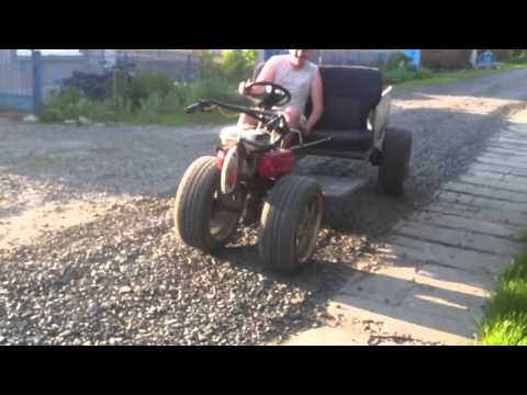 - Изготовьте руль. Можно использовать автомобильный или взять мотоблочную рукоять. Используя ее, управление самодельным устройством будет сходе с управлением мотоцикла.