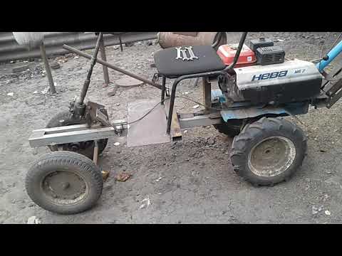 На них и будут устанавливаться колеса. Если двигатель мотоблока располагается сзади, то тогда ширина колеи обязана быть больше, в противном случае минитрактор не будет способен нормально держать ход в период работы. В подобной ситуации базовые колеса мотоблока оптимальнее будет снять и заново установить, но уже на более просторный мост. - Чтобы сделать руль к агрегату, не требуется дополнительно снимать рукоятки у автомобиля или мотоцикла. Хватит использования рукоятки. Иначе говоря, у оператора будет возможность управлять минитрактором рулем, который на вид напоминает мотоциклетный. Впрочем, с ним оператору не удастся нормально сдавать назад. Именно поэтому предпочтительнее будет смонтировать рулевую колонку на минитрактор.