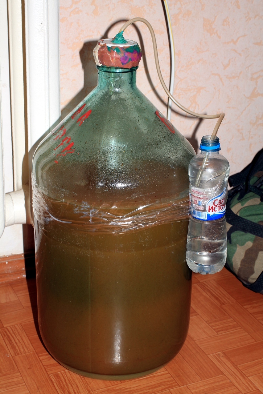 - Сверху закройте воздушный шлюз (или баллон) и дайте бродить в тепле 3-5 дней.