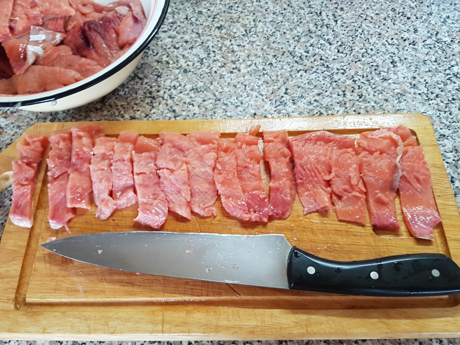 Горбушу разморозьте естественным способом, скребком очистите шкурку, отделите филе от хребта, постарайтесь достать все косточки и промойте ее под проточной холодной водой.