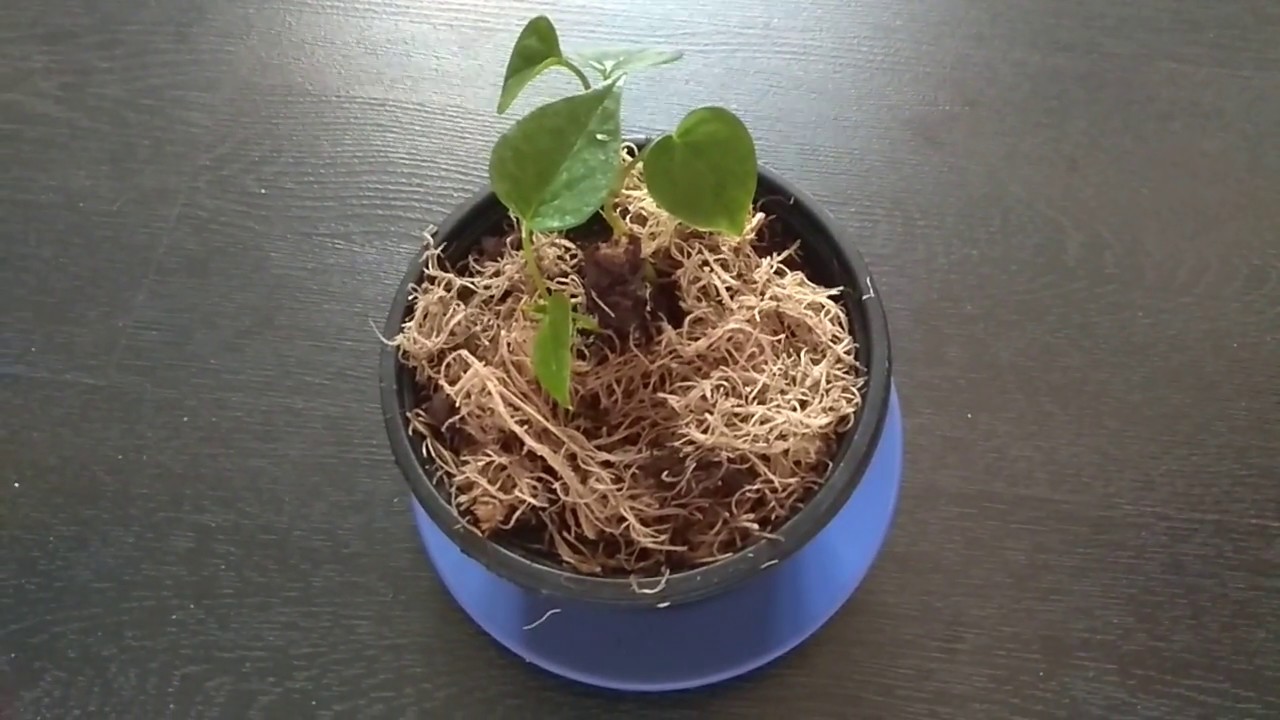 - Активирование воздушных корней. Это растение эпифитное и имеет воздушные корни. Оберните их влажным мхом-сфагнумом и оставьте в тёплом месте. Вскоре корни прорастут, и тогда их можно срезать со стебля. Мох при этом убирать не нужно. Воздушные корни теперь выполняют функции саженца. Их можно посадить в горшок и ждать дальнейшего роста.