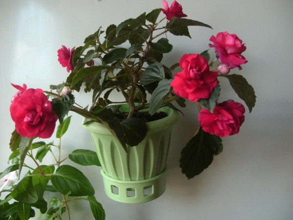В качестве комнатного цветка культивируется целая группа под названием Бальзамин Уоллера (Валлера). Это многолетники с пышными, но компактными, сильно разветвленными кустиками, высотой 15-40 сантиметров, с блестящими, зеленоватыми или вишнево-бронзовыми листиками и алыми, лиловыми, белоснежными, розоватыми или пестрыми цветочками.