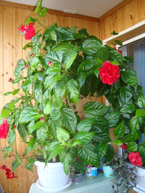Многолетний гибискус может выращиваться в комнатных условиях, в офисах и квартирах она вырастает до потолка. Гибискус китайский цветет разными цветами, но они всегда махровые или крупные.