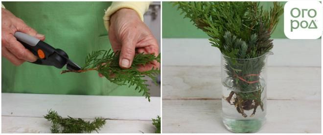 Перед тем, как приступить к укоренению, с черенка удаляют все хвоинки.
