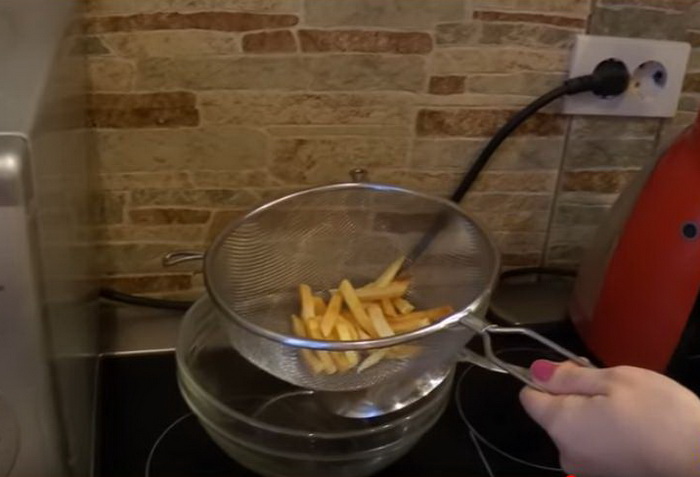 - Картофель фри полностью высушен.