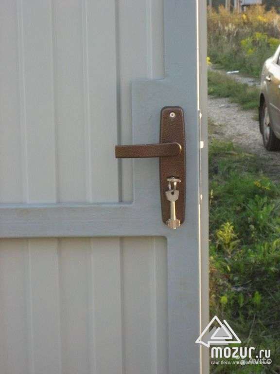 Он напоминает накладной механизм. Прежде чем вставлять замок в дверь из профлиста, потребуется наружная планка. Качество этого изделия повлияет на надежность запорного устройства.