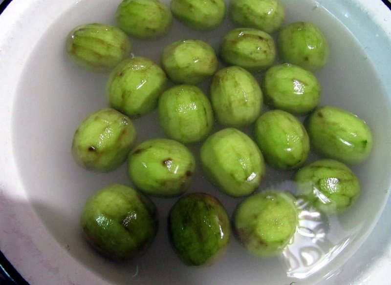 - Замачивание зеленых орехов в холодной воде – примерно на 2 суток орехи погружают в емкость с чистой холодной водой, меняя ее через каждые 3-4 часа.