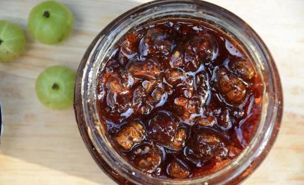 - Варенье из плодов с кожурой похоже на гречишный мед – оно имеет густой темный цвет. Для приготовления этого варенья плоды не освобождаются от покровной зеленой кожуры, которая плотно прилегает к неспелому ядру.