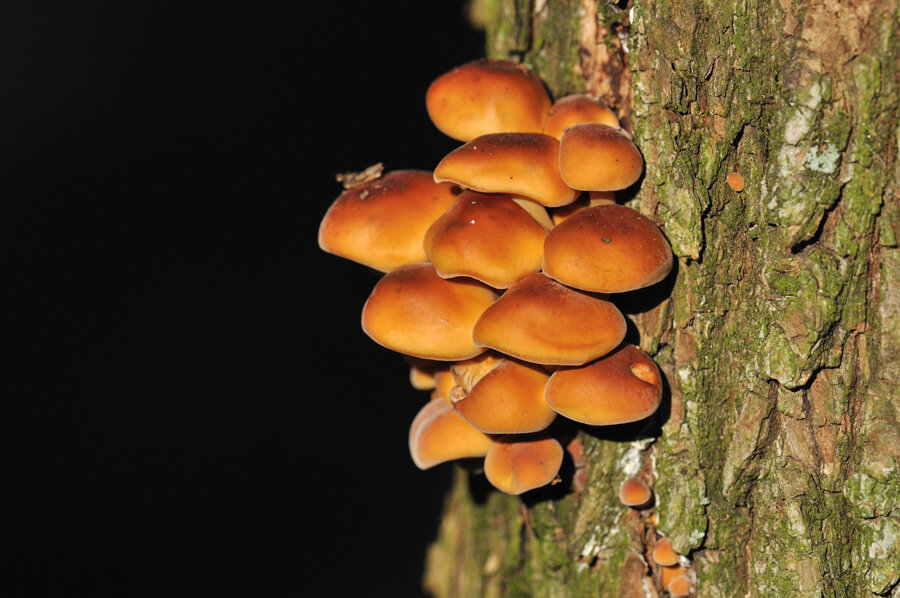 Места обитания опенка огненного (Flammulina velutipes, f. fl ammans): на пнях и валежных стволах лиственных и хвойных деревьев, а также на живых деревьях, особенно на дубе, ели и некоторых других лиственных деревьях.