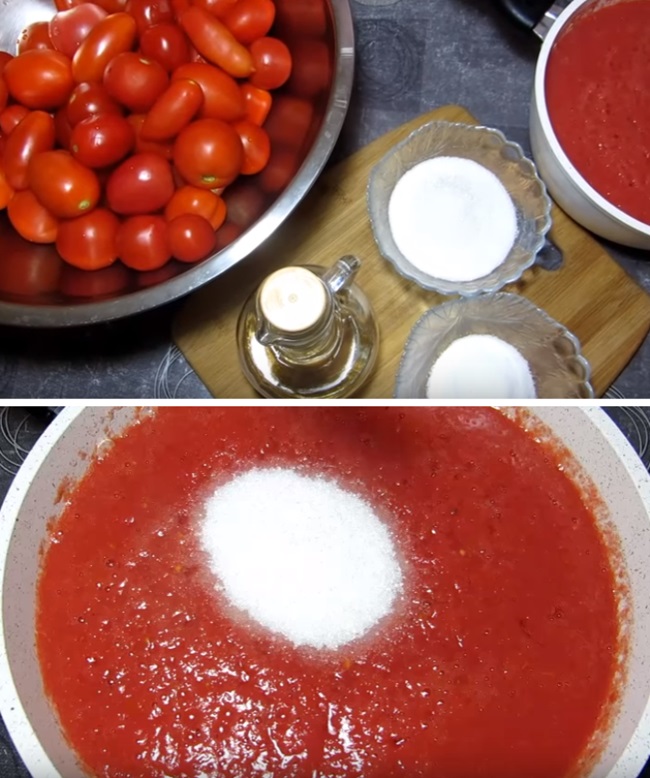 ΠΠΎΠ»ΡΡΠ΅Π½Π½ΡΠΉ ΡΠΎΠΌΠ°ΡΠ½ΡΠΉ ΡΠΎΠΊ ΠΏΠΎΠΌΠ΅ΡΡΠΈΡΡ Π² Π±ΠΎΠ»ΡΡΡΡ ΠΊΠ°ΡΡΡΡΠ»Ρ, ΠΌΠΎΠΆΠ½ΠΎ ΠΏΠΎΡΡΠΈΠΎΠ½Π½ΠΎ, ΠΈ Π΄ΠΎΠ±Π°Π²ΠΈΡΡ ΠΊ Π½Π΅ΠΌΡ ΡΠ°ΡΡΡΠΈΡΠ°Π½Π½ΠΎΠ΅ ΠΊΠΎΠ»ΠΈΡΠ΅ΡΡΠ²ΠΎ ΡΠΎΠ»ΠΈ ΠΈ ΡΠ°Ρ Π°ΡΠ°. Π Π°ΡΡΠ΅Ρ ΡΠΊΠ°Π·Π°Π½ Π² ΡΠ΅ΡΠ΅ΠΏΡΠ΅. Π‘ΠΎΠΊ Π΄ΠΎΠ²Π΅ΡΡΠΈ Π΄ΠΎ Π·Π°ΠΊΠΈΠΏΠ°Π½ΠΈΡ ΠΈ Π²Π°ΡΠΈΡΡ Π½Π° Π½Π΅Π±ΠΎΠ»ΡΡΠΎΠΌ ΠΎΠ³Π½Π΅ Π² ΡΠ΅ΡΠ΅Π½ΠΈΠ΅ 15 ΠΌΠΈΠ½ΡΡ, ΠΏΠ΅ΡΠΈΠΎΠ΄ΠΈΡΠ΅ΡΠΊΠΈ ΠΏΠΎΠΌΠ΅ΡΠΈΠ²Π°Ρ ΠΈ ΡΠ½ΠΈΠΌΠ°Ρ ΠΎΠ±ΡΠ°Π·ΡΡΡΡΡΡΡ Π½Π° ΠΏΠΎΠ²Π΅ΡΡ Π½ΠΎΡΡΠΈ ΠΏΠ΅Π½ΠΊΡ.