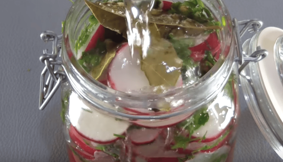 Данная заготовка готовится очень просто. В предварительно простерилизованные емкости уложить измельченный основной продукт. Залить горячим рассолом. Обязательное условие — стерилизация. Длительность — 25 минут. После этого банки герметично укупорить.