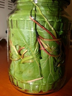 - Резаные или целые листья, свернутые трубочкой, уложить в емкость.