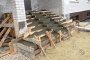 Если крыльцо уже имеет боковые ограждения из камня или кирпича. Опалубка представляет собой только подступенки. Стоит помнить, что перед закреплением опалубки устанавливается армирующий металлический каркас, который необходим для сохранения формы степеней после заливки.