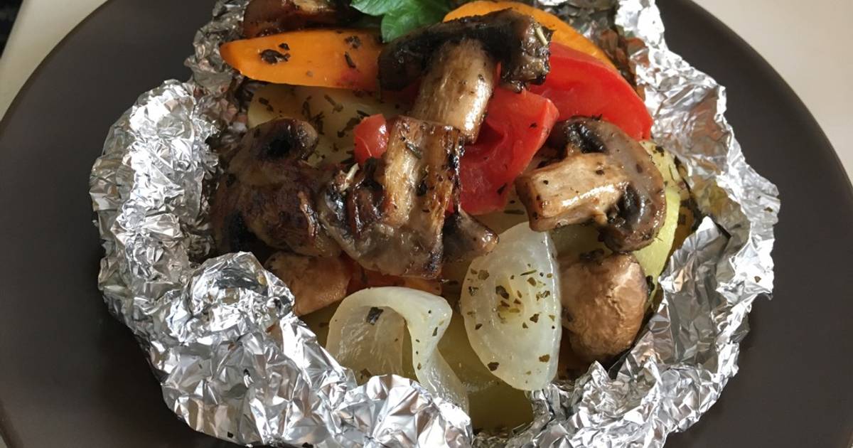 Очистите и нарежьте кабачки и кабачки ломтиками толщиной от ½ до 1 дюйма. Добавьте очищенный молодой картофель, нарезанный на четвертинки или восьмые части, кусочки красного болгарского перца и нарезанный лук, чтобы получилась классическая овощная комбинация, завернутая в фольгу.