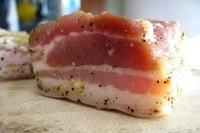 - Для сухой засолки надо брать куски сала – боковые пласты со спины, для горячей засолки-брюшина